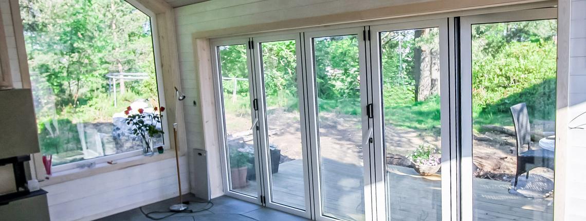 System drzwi harmonijkowych umożliwia wykonanie estetycznej i funkcjonalnej zabudowy, komfortowej dla użytkowników, dającej jednocześnie możliwość bardzo efektywnego wykorzystania przestrzeni w budynku. Konstrukcje harmonijkowe wykonujemy z trójkomorowego systemu Panorama, którego producentem jest firma Aliplast. Możliwość zastosowania dwóch rodzajów systemu progowego: system z płaskim progiem z uszczelnieniem szczotkowym, oraz szczelny próg wykonywany na bazie całościowej ościeżnicy po obwodzie całego okna tarasowego. W zależności od wymagań i zastosowania, system Panorama oferuje konstrukcje otwierane do wewnątrz bądź otwierane na zewnątrz w bardzo dużej konfiguracji skrzydeł (2+1,3 + 2, 3+3).